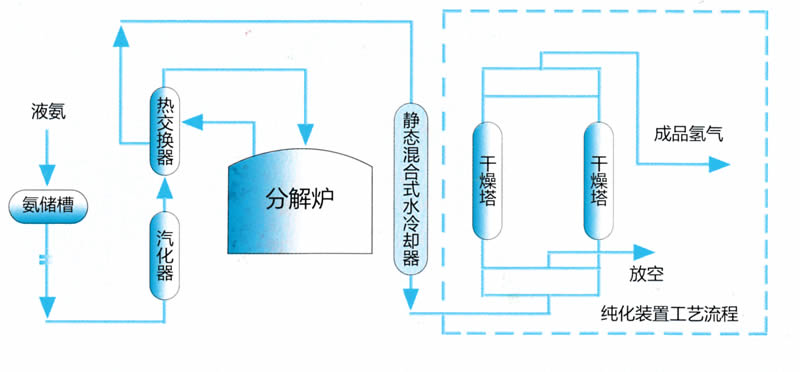 氨分解氣體發(fā)生裝置是以液氨為原料,在鎳基催化劑的作用下加熱分解得到含氫75%,含氮25%的氫氮混合氣體,氨分解氣體發(fā)生裝置具有結(jié)構(gòu)簡(jiǎn)單、投資少、效率高等特點(diǎn),通過(guò)凈化容易獲得較滿意的保護(hù)氣體。產(chǎn)品遍布熱處理、粉末冶金、硬質(zhì)合金、軸承、鍍鋅、帶鋼等行業(yè)。