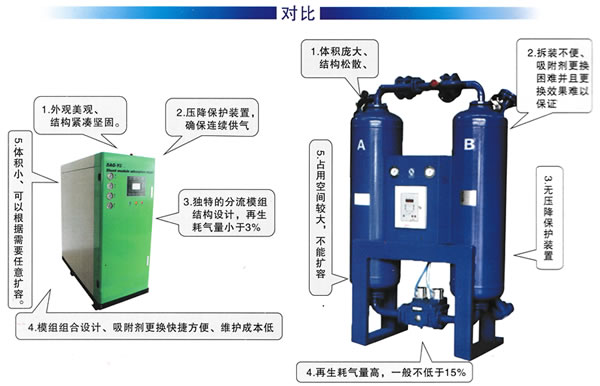 分流模組吸附干燥機和雙塔吸附式干燥機技術性能對比